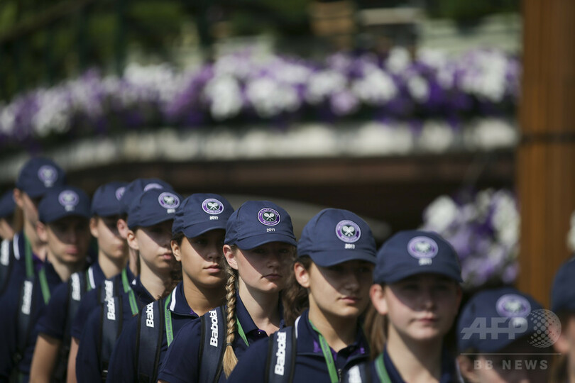 2週間にわたり開催されるウィンブルドンでは、約250人のボールキッズが働いており、地元の学校に通う平均年齢15歳の少年少女が選ばれている。(c)AFP