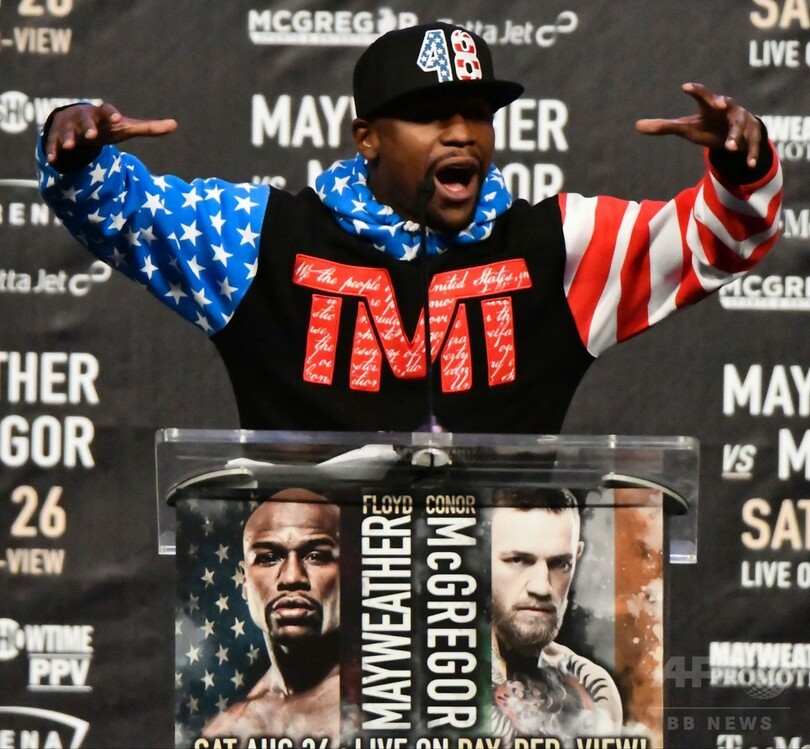 【7月12日 AFP】8月26日に対戦を控えるボクシングの元世界王者フロイド・メイウェザー・ジュニア(Floyd Mayweather Jr.、米国)と総合格闘技大会「UFC(Ultimate Fighting Championship)」のスター、コナー・マクレガー(Conor McGregor、アイルランド)が11日、米カリフォルニア(California)州ロサンゼルス(Los Angeles)で記者会見を行い、導火線に火をつけた。