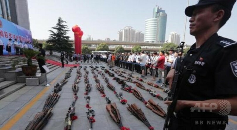 河南省(Henan)鄭州市(Zhengzhou)でも7日、銃火器658丁、弾薬14万発、爆薬約130トン、雷管(起爆装置)14.9万個、モデルガン2500丁、刀剣4100本、クロスボウ164丁、化学薬品827キロを押収した。違法銃火器や刀剣類は、同市の河南済源鉄鋼グループの管理する工場ですべて処分された。(c)CNS/JCM/AFPBB News