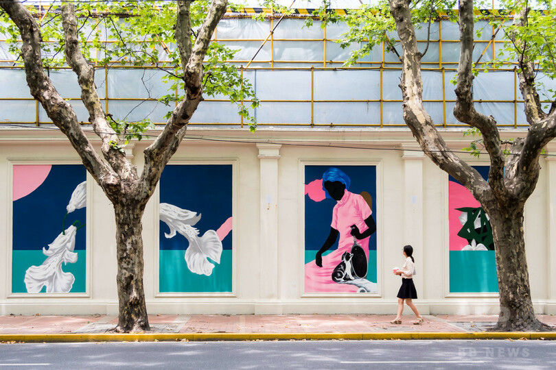 【7月19日 CNS】照りつける太陽と、肌に絡みつくような空気。街を行く人々も早足になる。そんな中、上海(Shanghai)衡山路(Hengshan Road)の木陰に100メートルほど続くの塀の前で、たくさんの通行人が思わず足を止める場所がある。衡山路8号生活芸術センターのストリートアートプロジェクト第1号として、芸術家の林子楠(Lin Zinan)氏とそのチームが衡山路の塀に描いた巨大な壁画だ。タイトルは、「新浪漫 The New Wave」。