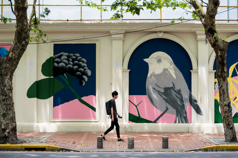 【7月19日 CNS】照りつける太陽と、肌に絡みつくような空気。街を行く人々も早足になる。そんな中、上海(Shanghai)衡山路(Hengshan Road)の木陰に100メートルほど続くの塀の前で、たくさんの通行人が思わず足を止める場所がある。衡山路8号生活芸術センターのストリートアートプロジェクト第1号として、芸術家の林子楠(Lin Zinan)氏とそのチームが衡山路の塀に描いた巨大な壁画だ。タイトルは、「新浪漫 The New Wave」。