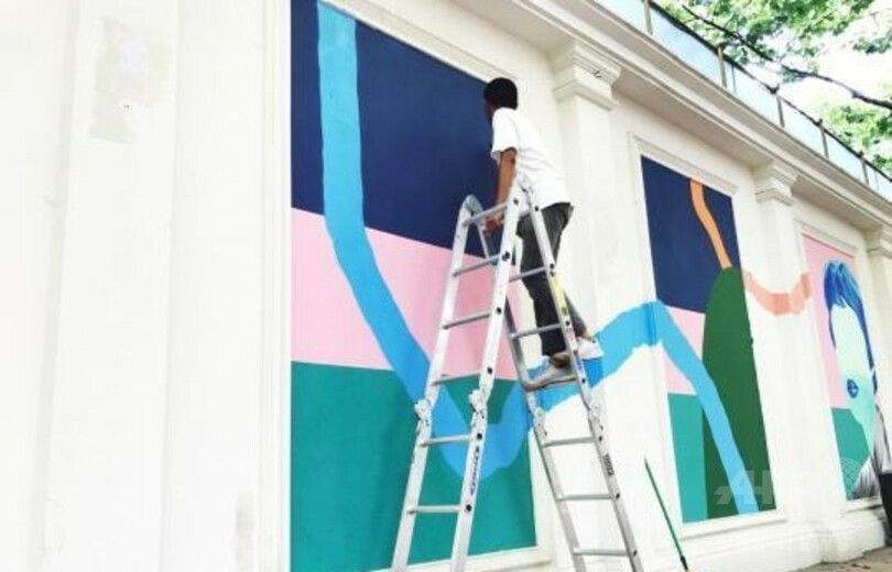 【7月19日 CNS】照りつける太陽と、肌に絡みつくような空気。街を行く人々も早足になる。そんな中、上海(Shanghai)衡山路(Hengshan Road)の木陰に100メートルほど続くの塀の前で、たくさんの通行人が思わず足を止める場所がある。衡山路8号生活芸術センターのストリートアートプロジェクト第1号として、芸術家の林子楠(Lin Zinan)氏とそのチームが衡山路の塀に描いた巨大な壁画だ。タイトルは、「新浪漫 The New Wave」。