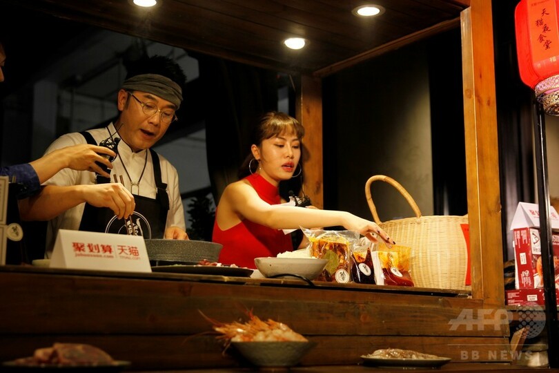 歌手の林依輪(Allen Lin)が屋台「天猫夜食堂」をオープンさせたのだ。天猫(Tmall)と共同で展開している。(c)CNS/JCM/AFPBB News