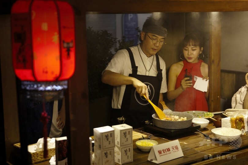 歌手の林依輪(Allen Lin)が屋台「天猫夜食堂」をオープンさせたのだ。天猫(Tmall)と共同で展開している。(c)CNS/JCM/AFPBB News