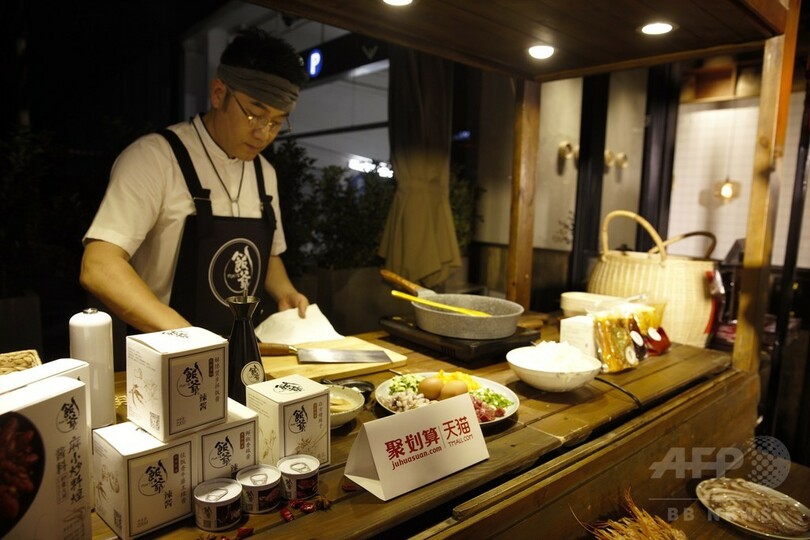 歌手の林依輪(Allen Lin)が屋台「天猫夜食堂」をオープンさせたのだ。天猫(Tmall)と共同で展開している。(c)CNS/JCM/AFPBB News
