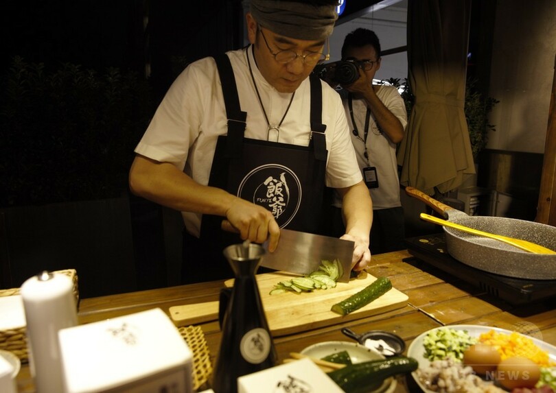 歌手の林依輪(Allen Lin)が屋台「天猫夜食堂」をオープンさせたのだ。天猫(Tmall)と共同で展開している。(c)CNS/JCM/AFPBB News