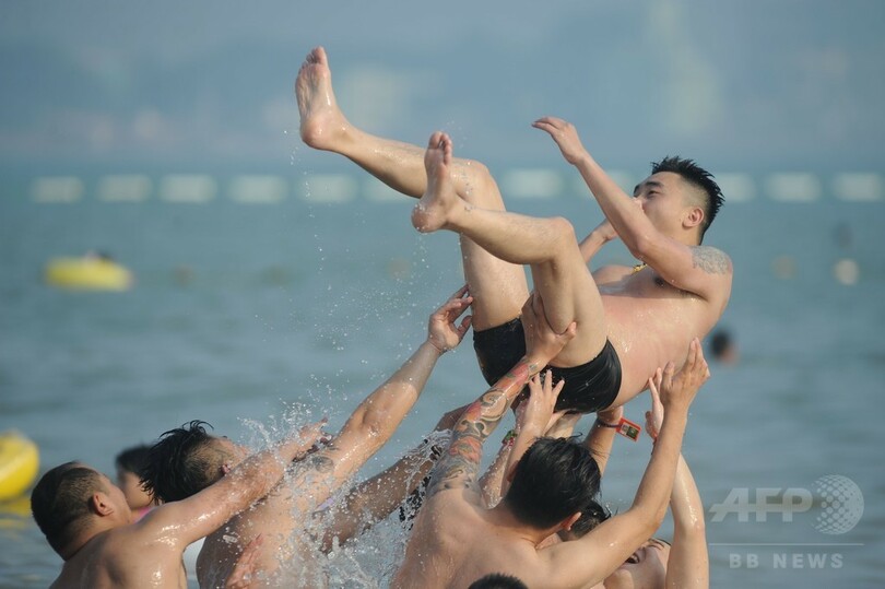 【7月16日 CNS】旧暦の土用入りとなった12日、最高気温を迎えた青島市(Qingdao)の第1海水浴場には数万人が海水浴に訪れ、海辺はまるで「鍋の中の水餃子(「芋洗い」状態)」だった。(c)CNS/JCM/AFPBB News