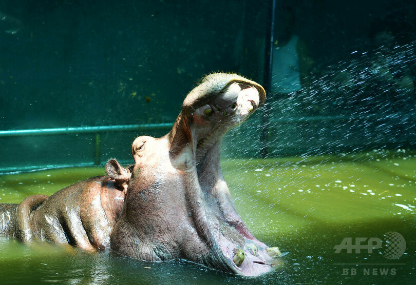 氷の塊、夏野菜や果物。空調を設置したり、池に水をためて涼んでもらったり、日よけネットを用意したり。同動物園では、動物たちのためにさまざまな暑さ対策を行っている。(c)CNS/JCM/AFPBB News