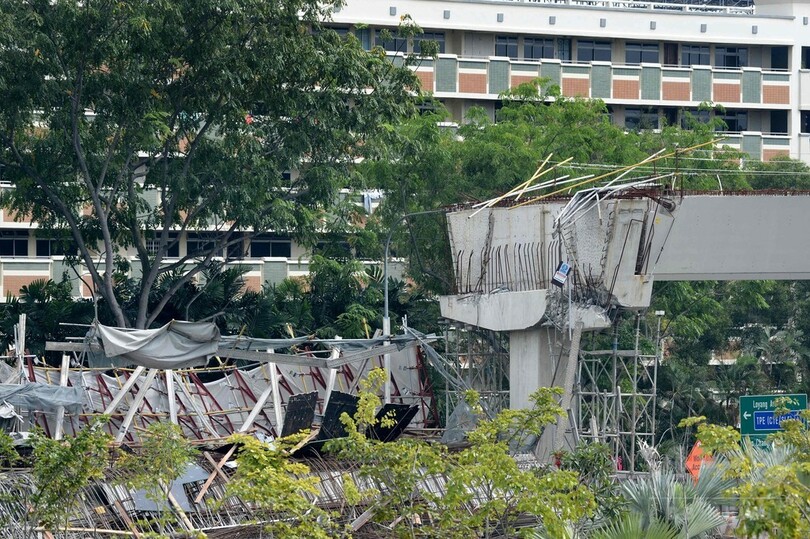 シンガポールで高架道路が崩落、中国人作業員1人死亡