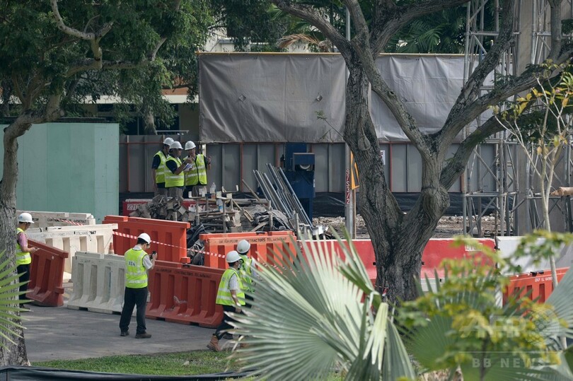 シンガポールは建設現場に厳しい安全管理基準を課しており、こうした事故は珍しい。富裕層の多い同国だが、建設作業の大半は短期の労働許可を得て入国した移民労働者が担っている。(c)AFP