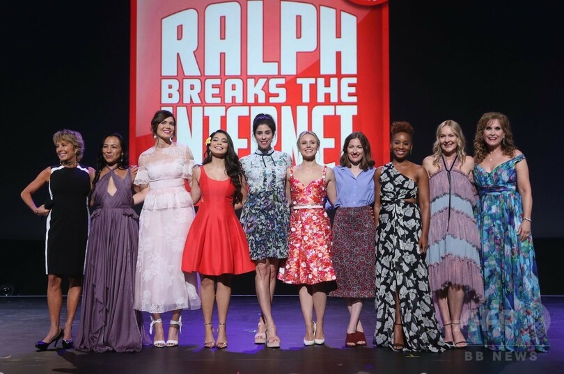 その他、ディズニーアニメでヒロインの声を担当した女優、声優たちも一堂に会し、『モアナと伝説の海(Moana)』のアウリイ・クラヴァーリョ(Auli'i Cravalho)、『アナと雪の女王(Frozen)』のクリステン・ベル(Kristen Bell)、『メリダとおそろしの森(Brave)』のケリー・マクドナルド(Kelly MacDonald)、『塔の上のラプンツェル(Tangled)』のマンディ・ムーア(Mandy Moore)、『プリンセスと魔法のキス(The Princess And The Frog)』のアニカ・ノニ・ローズ(Anika Noni Rose)、『ポカホンタス(Pocahontas)』のアイリーン・ベダード(Irene Bedard)、『アラジン(Aladdin)』のリンダ・ラーキン(Linda Larkin)、『美女と野獣(Beauty and the Beast)』のペイジ・オハラ(Paige O'Hara)、『リトル・マーメイド/人魚姫(The Little Mermaid)』のジョディ・ベンソン(Jodi Benson)が登壇した。(c)AFP