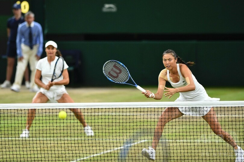 ペアとしては通算2度目の大会出場を果たしたチャン/ニクレスクのペアを相手に、マカロワ/ベスニナ組はウィンブルドンの女子ダブルスでは史上2度目のダブルベーグルを達成している。(c)AFP