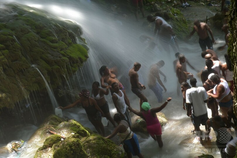 【7月16日 AFP】ハイチでは15日、首都ポルトープランス(Port-au-Prince)の北68キロの町ソー・ドー(Saut d'Eau)で、年に1度の巡礼の行事が行われ、参加したカトリック教徒やブードゥー(Voodoo)教の信者らが滝で沐浴(もくよく)する姿が見られた。(c)AFP