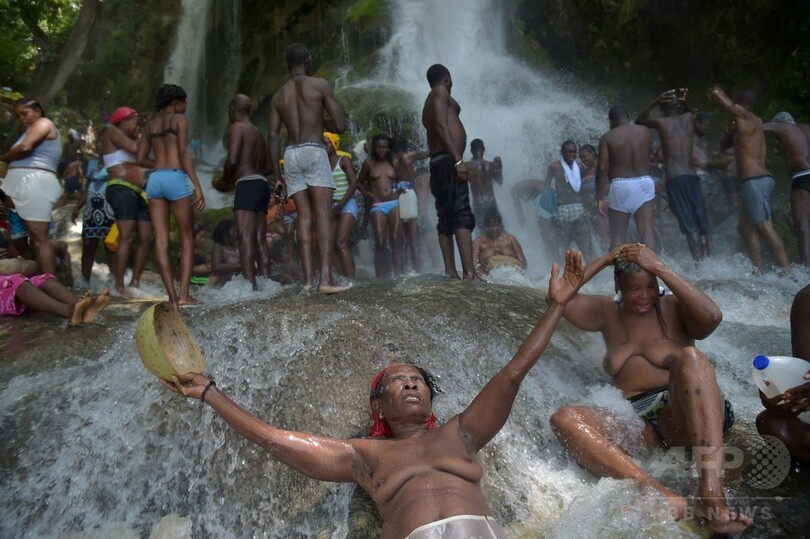 【7月16日 AFP】ハイチでは15日、首都ポルトープランス(Port-au-Prince)の北68キロの町ソー・ドー(Saut d'Eau)で、年に1度の巡礼の行事が行われ、参加したカトリック教徒やブードゥー(Voodoo)教の信者らが滝で沐浴(もくよく)する姿が見られた。(c)AFP