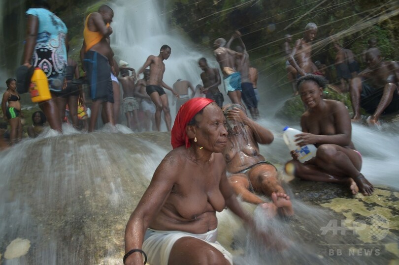 【7月16日 AFP】ハイチでは15日、首都ポルトープランス(Port-au-Prince)の北68キロの町ソー・ドー(Saut d'Eau)で、年に1度の巡礼の行事が行われ、参加したカトリック教徒やブードゥー(Voodoo)教の信者らが滝で沐浴(もくよく)する姿が見られた。(c)AFP