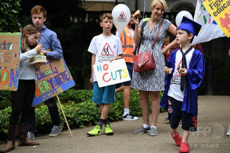 【7月17日 AFP】英ロンドン(Londo)中心部で16日、すべての学校に公平な助成を求めるデモが行われ、教師や生徒、保護者らが参加した。子どもたちもプラカードを掲げたり拡声器を使ったりしながら、市中心部のホワイトホールガーデンから(Whitehall Gardens)から国会議事堂前の広場「パーラメント・スクエア(Parliament Square)」まで行進した。(c)AFP