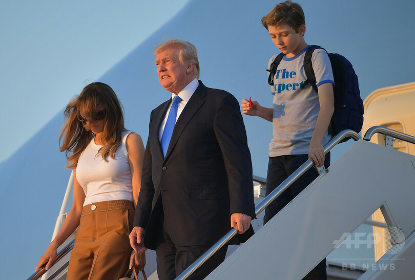 ドナルド・トランプ(Donald Trump)米大統領の息子バロン(Barron Trump)君も先月、ハンドスピナーで遊びながら大統領専用機「エアフォースワン(Air Force One)」のタラップを下りる姿を撮影されている。(c)AFP
