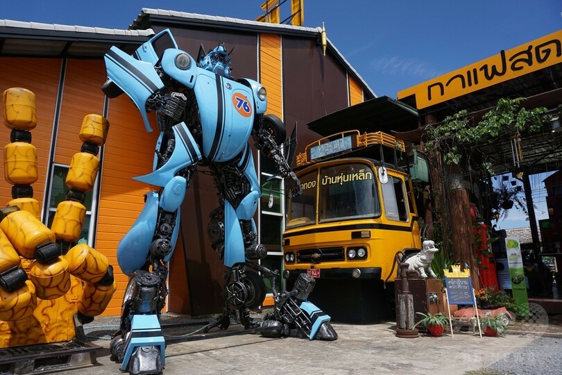国内の大半の寺院には穏やかな表情の仏像や幻獣が置かれているが、首都バンコク(Bangkok)郊外のノンタブリー(Nonthaburi)にある寺院ワット・タキエン( Wat Ta Kien)には、映画『トランスフォーマー(Transformer)』シリーズに登場するような大きなロボット3体が並び立つ。