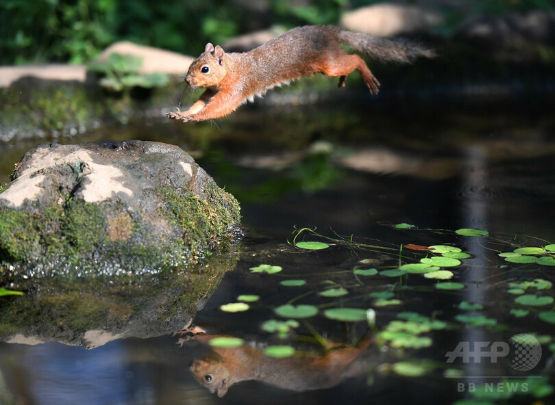 同園のリスを撮影して6年になる都内在住の画家、折原キット(Kit Orihara)さん(50)は「季節ごとに異なる多彩な行動や表情が魅力。普段は巣箱で寝るリスが、暑さで警戒心もなく枝の上でうたた寝する様子も今ならでは」と話した。(c)AFPBB News