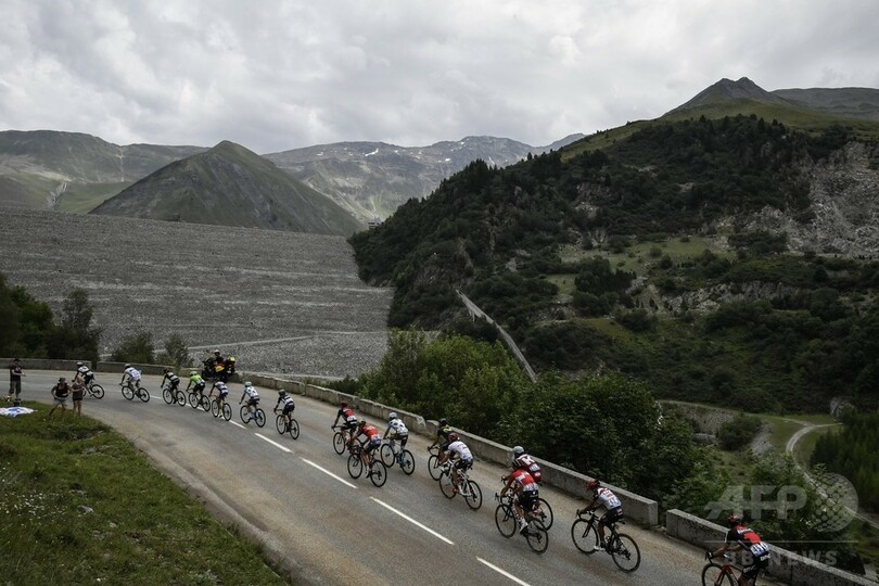 総合争いではチームスカイ(Team Sky)のクリス・フルーム(Chris Froome、英国)が首位を守り、キャノンデール・ドラパック(Cannondale Drapac Pro Cycling Team)のリゴベルト・ウラン(Rigoberto Uran、コロンビア)が27秒差の2位に浮上。アージェードゥゼル・ラ・モンディアル(AG2r - La Mondiale)のロマン・バルデ(Romain Bardet、フランス)が3位に続き、アスタナ(Astana Pro Team)のファビオ・アール(Fabio Aru、イタリア)が4位に後退した。(c)AFP/Barnaby CHESTERMAN
