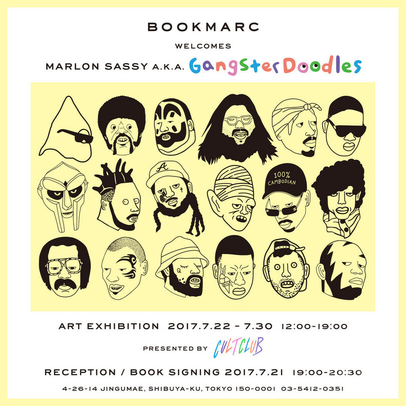 作品集「GANGSTER DOODLES BOOK」の発売を記念して開催される今回のエキシビションは、ニューヨーク発ファッションブランド「マーク ジェイコブス(Marc Jacobs)」が手掛けるブックストア ブックマーク(BOOKMARC)地下ギャラリーにて開催される。個展にあわせて、アーティストが初来日。また世界各地のアーティストにフォーカスした活動で、日本からアートカルチャーを発信する新鋭レーベル兼ブランドの「CULT CLUB」とのコラボアイテムの展開や、サイン会も実施する。