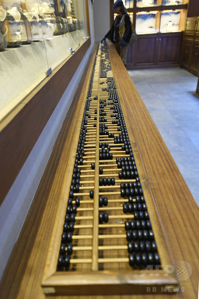 巨大そろばんの長さは6メートル、幅24センチ、総重量約50キロ。20人が同時に使える。(c)CNS/JCM/AFPBB News