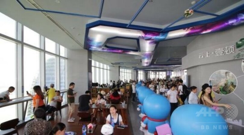 ドラえもんと何枚も写真を撮った林さんは、20代の女性。景色の良い展示ホールで、コロンス島(Kulangsu)や厦門大学(Xiamen University)など見下ろしながら最愛のドラえもんと会えて、「“萌えた”一日」と微笑んだ。(c)CNS/JCM/AFPBB News