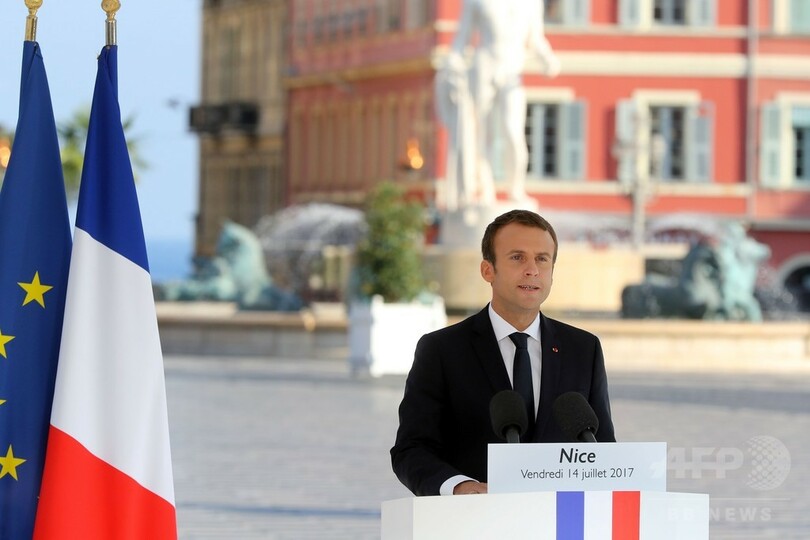 【7月23日 AFP】5月に就任したエマニュエル・マクロン(Emmanuel Macron)仏大統領(39)の支持率が先月から10ポイント低下し54%となったことが、23日に公表された世論調査結果で明らかになった。