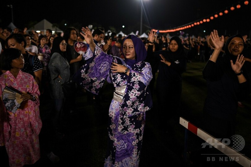 マレーシアで盆踊り大会、浴衣姿のイスラム教徒女性も
