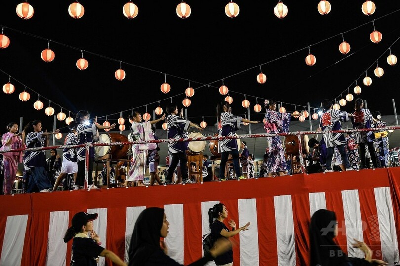 【7月23日 AFP】マレーシアの首都クアラルンプール(Kuala Lumpur)近郊のシャーアラム(Shah Alam)で22日、恒例の盆踊り大会が開かれ、現地在住の日本人やマレーシアの人たちが夏の夜の催しを楽しんだ。(c)AFP