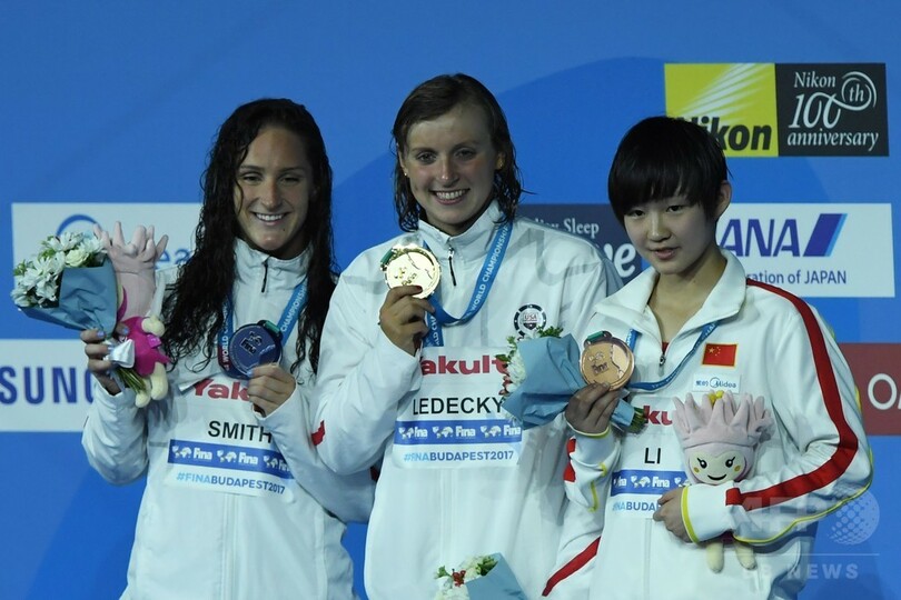 【7月24日 AFP】第17回世界水泳選手権(17th FINA World Championships)は23日、競泳競技が開始され、米国のケイティ・レデッキー(Katie Ledecky)が2種目で金メダルを獲得した。