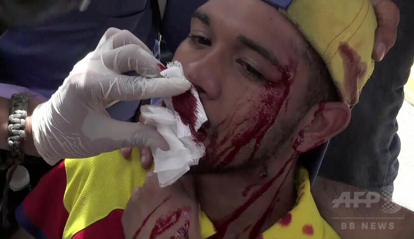 【7月24日 AFP】辺りには息ができないほど催涙ガスが充満し、放水銃が放たれている混沌(こんとん)とした路上にベネズエラ国旗と同じ赤、青、黄色のシャツを着たやせた男性が、勇敢にも独りでたたずみ、バイオリンを弾き始める。演奏するのは国歌やベネズエラの伝統音楽だ。