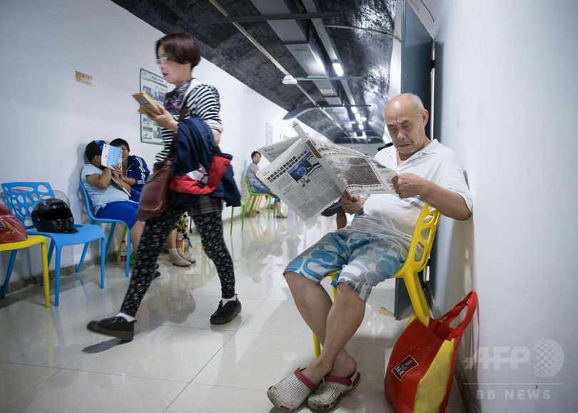 【7月30日 CNS】中国・南京市(Nanjing)では、気象台が高温赤色預警信号(24時間内に最高気温は40℃以上)を24日に発表するなど、連日、気温40℃の焼けるような天気が続く。だが、防空壕の中はまるで「俗界を離れた別世界」のようだ。適度な温度で、無料の飲用水、WiFi、新聞紙、テレビなどの設備も整っており、多くの市民が避暑に訪れている。(c)CNS/JCM/AFPBB News