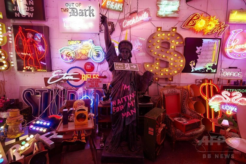 【8月23日 AFP】 英ロンドン(London)東部ウォルサムストー(Walthamstow)のギャラリー「ゴッズ・オウン・ジャンクヤード(God's Own Junkyard)」は、まばゆいばかりのネオンの迷路だ。このだだっ広い倉庫はさまざまな形と大きさのネオンサインであふれ、欧州最大級のコレクションを有している。