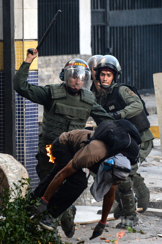 一連のデモでは26日、同国西部で抗議活動中の男性(30)が銃撃を受け死亡したほか、検察当局によると首都カラカス(Caracas)で起きた衝突で少年(16)が死亡。死者は合わせて105人になった。(c)AFP/Maria Isabel SANCHEZ