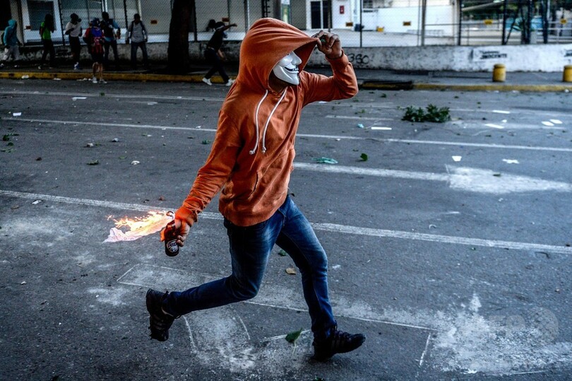 一連のデモでは26日、同国西部で抗議活動中の男性(30)が銃撃を受け死亡したほか、検察当局によると首都カラカス(Caracas)で起きた衝突で少年(16)が死亡。死者は合わせて105人になった。(c)AFP/Maria Isabel SANCHEZ