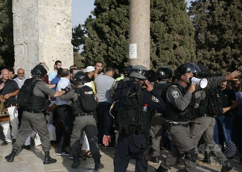 【7月28日 AFP】中東エルサレム(Jerusalem)にあるユダヤ、イスラム両教の聖地で27日、イスラエル警察とパレスチナ人の衝突が発生し、パレスチナ赤新月社(Palestinian Red Crescent)によると敷地内とその周辺で合わせて100人前後がけがをした。