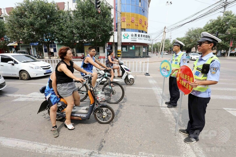 【8月1日 CNS】「歩行者に道を譲ろう」をテーマに、中国・山西省(Shanxi)運城市(Yuncheng)万栄県(Wanrong)の交通警察は27日、県内の十字路で交通安全の宣伝活動を行った。