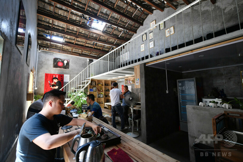 アートな雰囲気が漂うこのシェアスペースは誰でも利用でき、すべてセルフサービス。シェアスペースの発起人の邵東強(Shao Dongqiang)さんは、「ここでは、自分でお湯を沸かしてお茶をいれたり、ちょっと本を手に取って読んだり、メッセージノートに今の気持ちをつづったり。ただ座ってボーッとすごしてもいい、完全に自由な空間」と話す。(c)CNS/JCM/AFPBB News