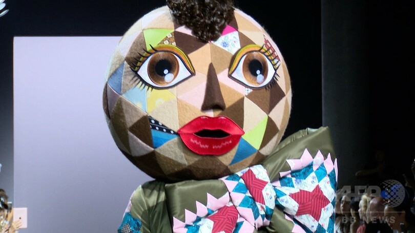 オープニングでは、モデルたちがマンガ風の大きな頭を被って登場。一番に目を引いたのは、大胆に作り替えられたカーキのマットレスジャケットだ。ほかにもデニム使いや大きなリボン、ボリュームたっぷりにデザインされたボリュームジャケットなどがコレクションのアクセントとなった。(c)Parismodes.tv