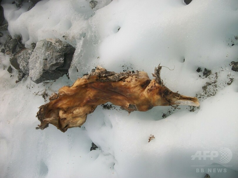 フランス・アルプス山脈の高峰モンブランで見つかった遺体の一部。ダニエル・ロシュ氏提供(2017年7月27日撮影、同28日提供)。(c)AFP/DANIEL ROCHE