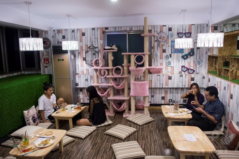 【7月29日 AFP】世界的なペットカフェの波がミャンマーにもやって来た。急速に変わりゆくミャンマーの最大都市のヤンゴン(Yangon)に動物カフェが2軒オープンしたのだ。ミャンマーは今、モンスーンの季節だが2軒のカフェが動物愛好家たちに屋内で過ごす楽しみを提供している。