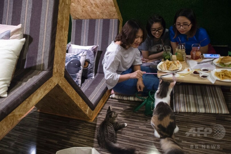 【7月29日 AFP】世界的なペットカフェの波がミャンマーにもやって来た。急速に変わりゆくミャンマーの最大都市のヤンゴン(Yangon)に動物カフェが2軒オープンしたのだ。ミャンマーは今、モンスーンの季節だが2軒のカフェが動物愛好家たちに屋内で過ごす楽しみを提供している。