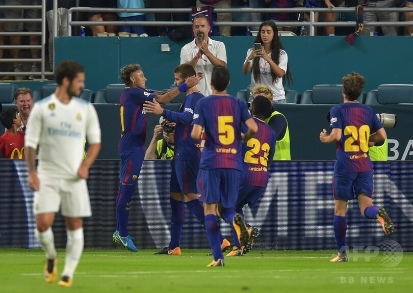 【7月30日 AFP】インターナショナル・チャンピオンズ・カップ(ICC)は29日、米マイアミ(Miami)で行われ、FCバルセロナ(FC Barcelona)とレアル・マドリード(Real Madrid)の一戦は、事前の期待に応える白熱した展開の末、バルセロナがジェラール・ピケ(Gerard Pique)の決勝点で3-2の勝利を収めた。