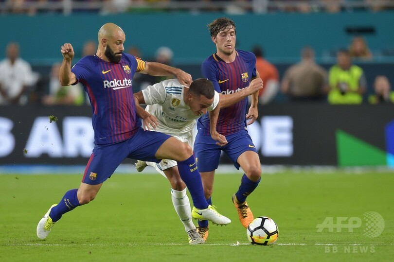 【7月30日 AFP】インターナショナル・チャンピオンズ・カップ(ICC)は29日、米マイアミ(Miami)で行われ、FCバルセロナ(FC Barcelona)とレアル・マドリード(Real Madrid)の一戦は、事前の期待に応える白熱した展開の末、バルセロナがジェラール・ピケ(Gerard Pique)の決勝点で3-2の勝利を収めた。