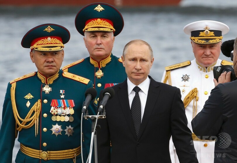 【7月30日 AFP】ロシアのウラジーミル・プーチン(Vladimir Putin)大統領は30日、バルト海(Baltic Sea)からシリア沖まで展開するロシアの軍事力を誇示する大規模な観艦式に出席した。