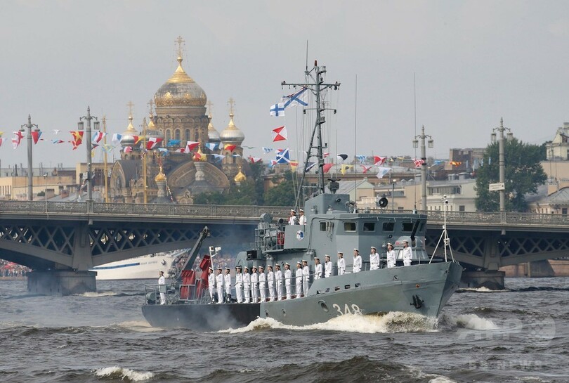 これまでで最大規模となる今回の観艦式は、プーチン大統領の命を受けた海軍が、30日に「ロシア海軍の日」を記念してロシア第2の都市サンクトペテルブルク(Saint Petersburg)で実施したもので、軍艦や潜水艦約50隻がネバ川(Neva River)やサンクトペテルブルク沖のフィンランド湾(Gulf of Finland)を航行した。