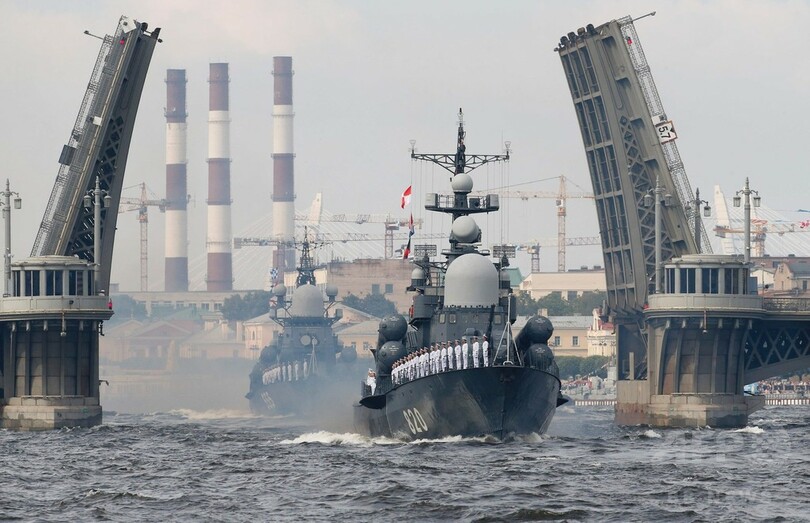 これまでで最大規模となる今回の観艦式は、プーチン大統領の命を受けた海軍が、30日に「ロシア海軍の日」を記念してロシア第2の都市サンクトペテルブルク(Saint Petersburg)で実施したもので、軍艦や潜水艦約50隻がネバ川(Neva River)やサンクトペテルブルク沖のフィンランド湾(Gulf of Finland)を航行した。