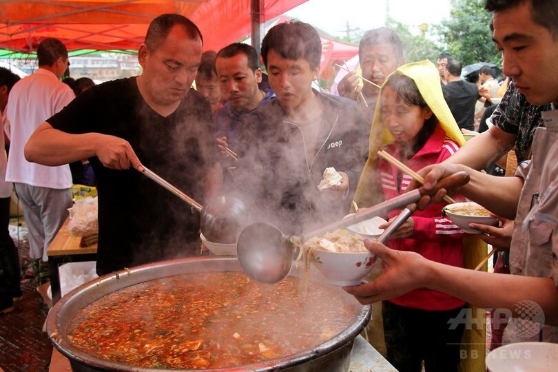 災害発生時、綏徳県の橋は10か所以上が漫水し、旧市街では最大4メートルの浸水が確認された。特に被害が大きかった西山街(Xishanjie)などの地域では、排水や汚泥、損傷した車などを現場から撤去する作業が行われている。(c)CNS/JCM/AFPBB News