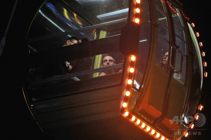 青島西海岸新区の海上嘉年華にある観覧車のイルミネーションに明かりが灯るころ、観覧車のゴンドラ内にはさまざまな楽器を持った人々がこっそりと乗り込んだ。スロバキアから来訪中のしたコシツェ・フィルハーモニー管弦楽団(Kosice State Philharmonic)と北京八中(Beijing No.8 High School)金帆(Jinfan)交響楽団などの若手音楽家が集結し、観覧車オーケストラの旅に出た。(c)CNS/JCM/AFPBB News